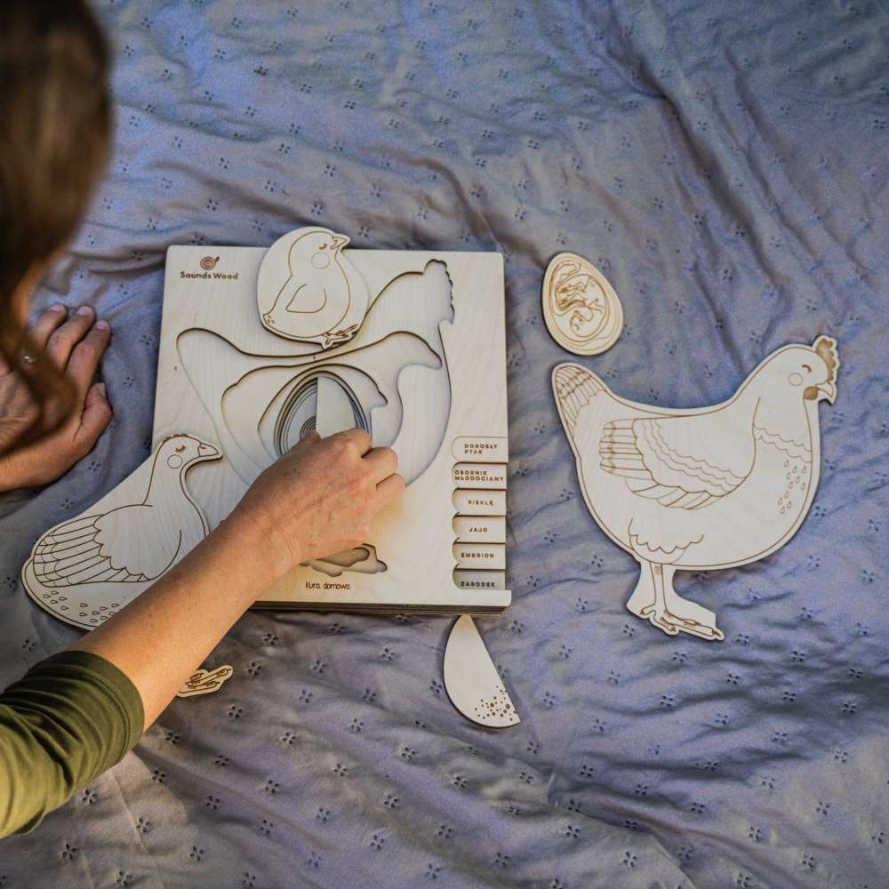Educational Wooden Puzzle for Children “Chicken out!” Hen Life Cycle – Sounds Wood