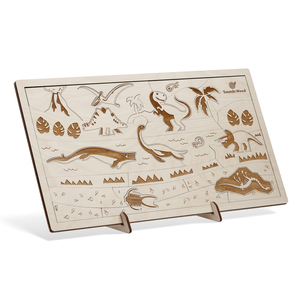 Educational wooden puzzle „Lost world” Dinosaurs Sounds Wood