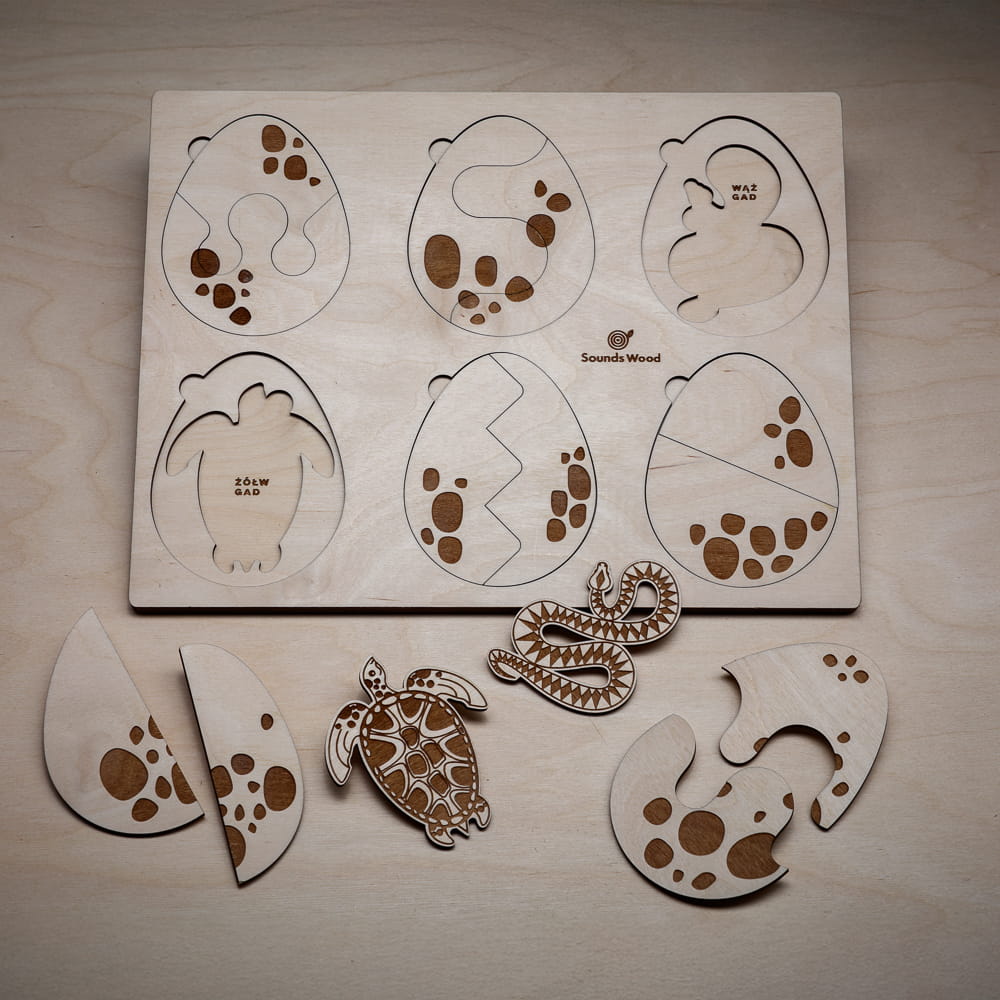 Educational wooden puzzle „Egg on” Animals life cycle Sounds Wood